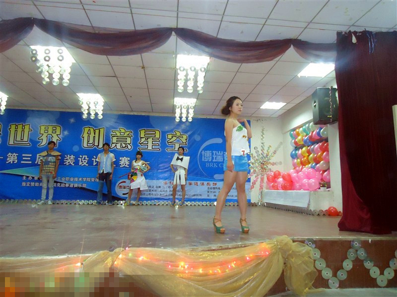 “环保世界,创意星空”——管理工程系第三届环保主题时装设计大赛(科技文化节系列活动之一)于5月18日晚在院图文信息中心大学生活动中心举行。在优美的旋律声中,校园模特们身着设计者们用塑料桌布、光碟、报纸、蚊帐、窗帘等废旧物品精心设计制作出来晚礼服、休闲套装,走上舞台,向大家展示自己的优美身姿以及设计者的独具匠心的创意设计,台下的观众不时地爆以热烈的掌声,同时,积极地参与现场评选。(稿件来源:管理工程系)