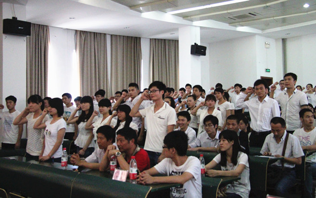 活动在雄壮的国歌声中拉开帷幕。在学院人事政工部老师的带领下,150多名新党员满怀激动得心情进行了入党宣誓,老党员重温入党誓词,庄严激昂的入党誓词在整个教室回荡。