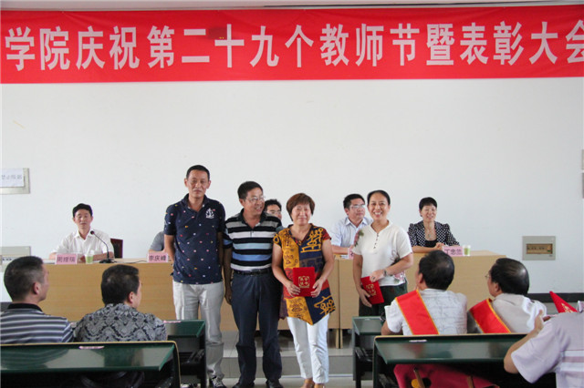 在这秋高气爽的九月里,我们全校师生满怀喜悦迎来了第二十九个教师节。9月9日下午4:30,庆祝2013年教师节暨表彰大会在教学楼阶梯教室201隆重举行,学院59位优秀教职工在大会上受到表彰。