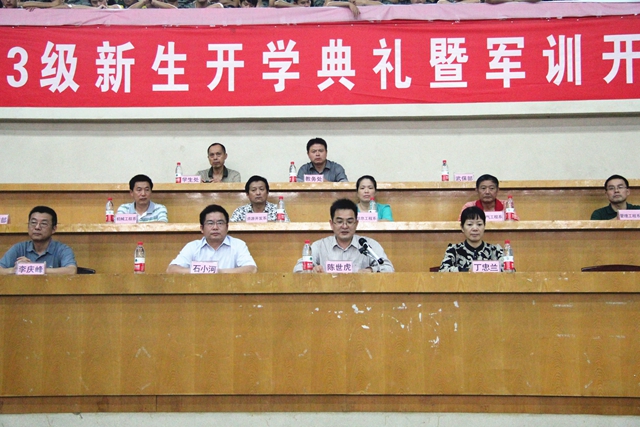 典礼上,学院院长陈世虎做动员讲话。他代表学院向2013级2225名新同学表示祝贺和欢迎。他从安工学院的历史、办学环境和办学积累、学院近年来的丰硕竞赛成果及职业教育的作用和意义向新生们介绍了学院情况及发展前景。陈世虎院长在典礼上向新生说道:“三年的大学时光也许不是你想象的那样轻松自在。苦求索兮,意志坚。当我们经历坎坷,当我们遭遇风雨,请拿出“天生我才必有用”的信心,拿出“吹尽黄沙始到金”的毅力,拿出“直挂云帆济沧海”的勇气,去迎接大学的风雨洗礼。”他希望2013级全体同学能够胸怀天下,志存高远,明确成才目标,成为国家栋梁;立德立行,全面发展,做事先做“人”,知情重,懂感恩,做到一专多能,全面发展;独立思考,崇尚实践,在批判中求是,在实践中成长;提升自我,严格军训,发扬解放军的光荣传统和优良作风,学习解放军忠于人民、献身祖国、吃苦耐劳、勇于拼搏的大无畏精神和钢铁般的组织纪律性,服从命令,听从指挥,尊敬教官,友爱同学,互相帮助。