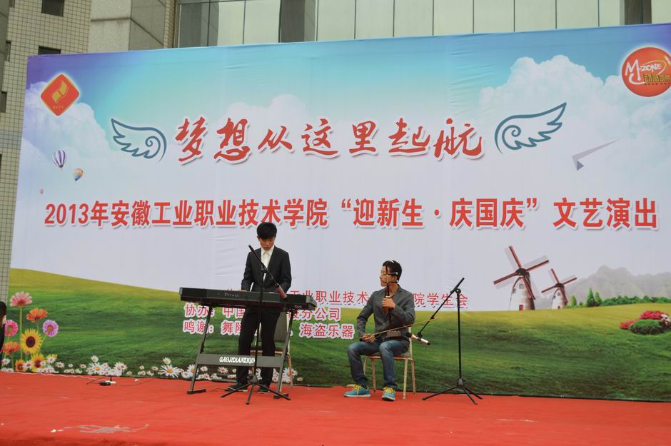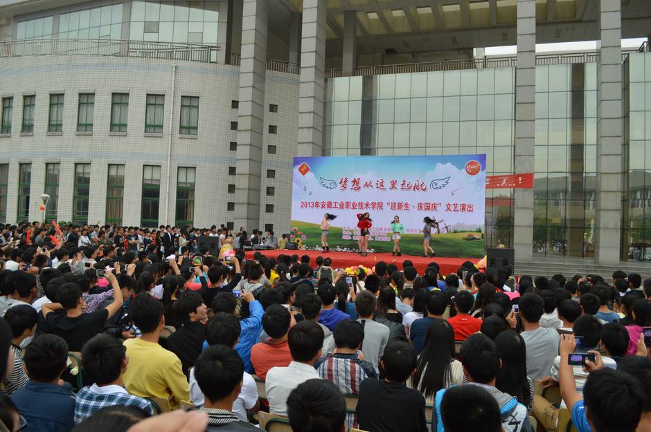 为热烈庆祝建国64周年,欢迎2013级新生的到来,展现学院深厚的校园文化积淀和浓郁的艺术氛围,9月27日下午,由学院团委、院学生会联合主办,中国移动铜陵分公司协办的“梦想从这里起航”2013年迎新生·庆国庆文艺演出在教学楼广场隆重举行。学院副院长丁忠兰、学生工作处、各系党支部书记、团总支书记等相关部门负责人亲临演出现场,与2013级新生欢聚一堂,共同观看了文艺演出。