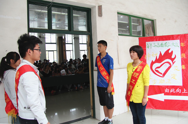 大会在200多名新招募的志愿者学生的热烈的掌声中正式拉开帷幕。学生会主席首先上台为大会致开幕词,对青年志愿者大会的成立表示热烈的祝贺。会上,学生会实践部部长通过PPT的形式向新招募志愿者展示了系部一年来青年志愿者活动的成果和志愿者们的风采,丰富的照片、精彩的活动使台下新招募的志愿者们听得津津有味,跃跃欲试。管理系团总支书记胡老师为大会进行了总结,要求要不断提高青年志愿服务事业的层次和水平,号召更多青年学生加入到志愿服务行列,为构建和谐校园、促进学院发展做出新的更大的贡献。