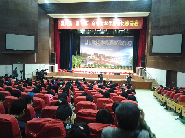 深秋时节,翡翠湖畔,碧水红叶,安徽大学磬苑校区的周末显得格外的清新、宁静。而艺术楼的小剧场内却华灯齐放,座无虚席,不时传来一阵阵时而铿锵激越,时而浑厚饱满,时而深情婉转的诗文朗诵声。