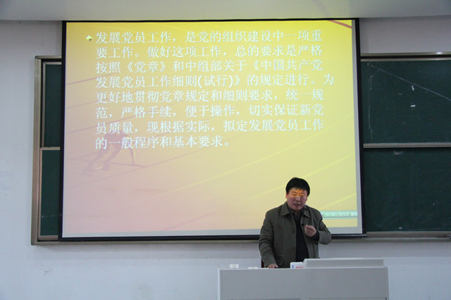 之后,学院人政部江主任、管理工程系汤书记、资源开发系钱书记、人政部副主任范主任分别为同学们讲授了题为《发展党员的一般程序和基本要求》、《怎样才能成为一名合格的入党积极分子》、《当前的经济形势和任务》和《党的十八大及十八届三中全会精神学习》等专题讲座。讲座均结合切身经历、体会、感悟,贴近学生,使同学们对入党程序、新党章内容都有了进一步的了解和认识,许多同学在政治理论水平上有了进一步的提高,对党的认识更加深刻了,坚定了加入党组织的信念,增强了入党的信心,懂得了在今后的学习、工作中应该怎样努力争取更大的成绩。