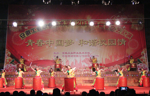 在众人的期盼下,演出在大学生艺术团《盛世鼓舞》鼓乐的恢弘气势中拉开帷幕。院长陈世虎代表院领导班子向全院师生致以新年贺词。