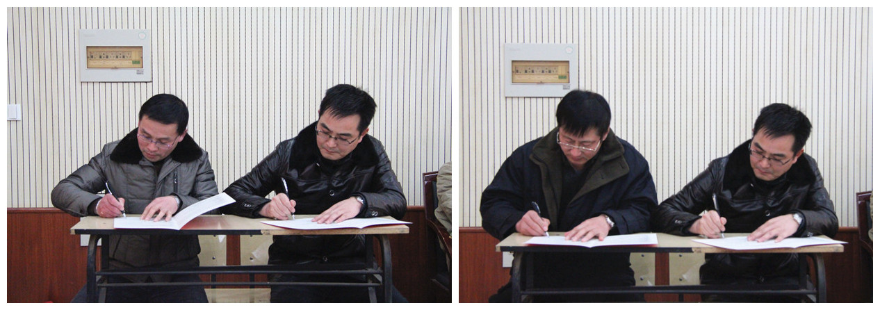 会上,学院领导和学院全体教职工代表进行了分组讨论。代表们畅所欲言,为完善学院规章制度和特色创建工作献计献策。下午的会议上,大会一致通过了《beat365官方网站2014年工作会议暨一届八次教职工代表大会关于学院工作报告的决议》、一致审议通过了《beat365官方网站一届八次教职工代表大会关于学院员工奖惩办法的决议》和《beat365官方网站一届八次教职工代表大会关于建设“节约型校园”指导意见的决议》。院长陈世虎和学院各系部负责人签订了系部工作责任书。