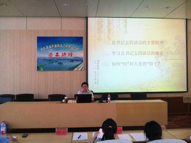 讲坛以《青年价值观取向——读懂习近平五四北大之行“扣子论”》为题,从习近平总书记五四讲话的主要精神,学习习近平总书记五四讲话的体会,特别就大学生如何“扣”好人生的“扣子”进行了深入探究。讲座中,石书记围绕“扣子论”,结合近年来发生的高校大学生伤害事件及影响校园秩序的不文明行为,用媒体报道视频及图片向同学们阐述了珍惜“同学情”及践行“社会主义核心价值观”的重要性,引发了在场学生的一致赞同和深思。石书记还殷切地向同学们提出了三点建议:一是找准方向,承担使命;二是严格自律,行胜于言;三是刻苦学习,掌握技能,提升能力。