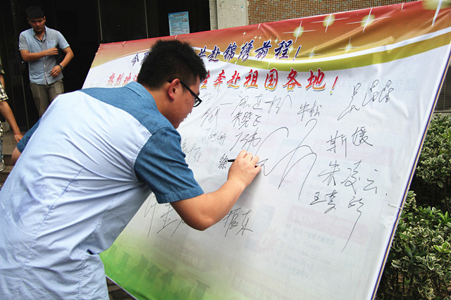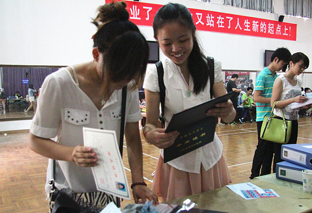 热烈欢送毕业生奔赴祖国各地建功立业的条幅醒目而亮眼,让广大毕业生感受到母校大家庭的温暖。11级管理系会计1班毕业生宋雯怡告诉记者,她早上九点钟来学校办离校手续,只要拿着事先在网上下载打印填写好的表格,前往辅导员和系部办理手续,只要短短十几分钟就把所有的手续全部办完,顺利地拿到了毕业证,非常方便快捷。