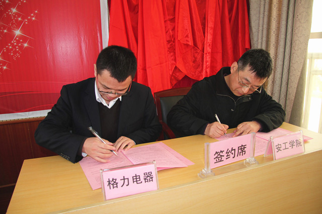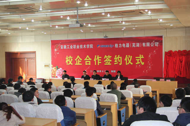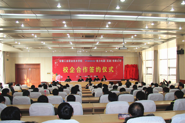 12月8日,我校校企合作的又一成果——学院与格力电器(芜湖)有限公司合作组建的“格力班”诞生了。上午,“格力电器(芜湖)有限公司联合办学基地”的揭牌仪式在阶梯教会301隆重,beat365正式和格力电器(芜湖)有限公司签订协议,宣布“格力班”成立。学院院长陈世虎、常务副院长李庆峰、副院长周理瑞、学院各部门主要负责人,格力电器(芜湖)有限公司副总经理翟浩春、总经办主任石琴、总经办人力资源科副科长程子龙、总经办人力资源科招聘规划组长桑希显、工程师张辉等人参加了签约仪式。