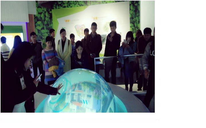 志愿者们参观3D城市建设效果图