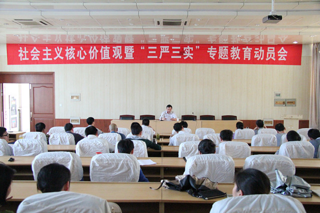 马平在作专题教育时指出,各单位各部门要全面掌握社会主义核心价值观、“三严三实”内涵及重要意义。“三严三实”是党的领导干部的行为准则和为官之道,是对作风建设一系列规定要求的提炼和概括。开展“三严三实”专题教育,要着力解决“不严不实”问题,切实增强践行“三严三实”要求的思想自觉和行动自觉,努力在深化“四风”整治、巩固和拓展党的群众路线教育实践活动成果上见成效;在守纪律讲规矩、营造良好政治生态上见实效;在真抓实干、推动改革发展稳定上见实效。全院要以社会主义核心价值观教育、“三严三实”教育统领干部队伍建设、师德师风建设、校园文化建设。