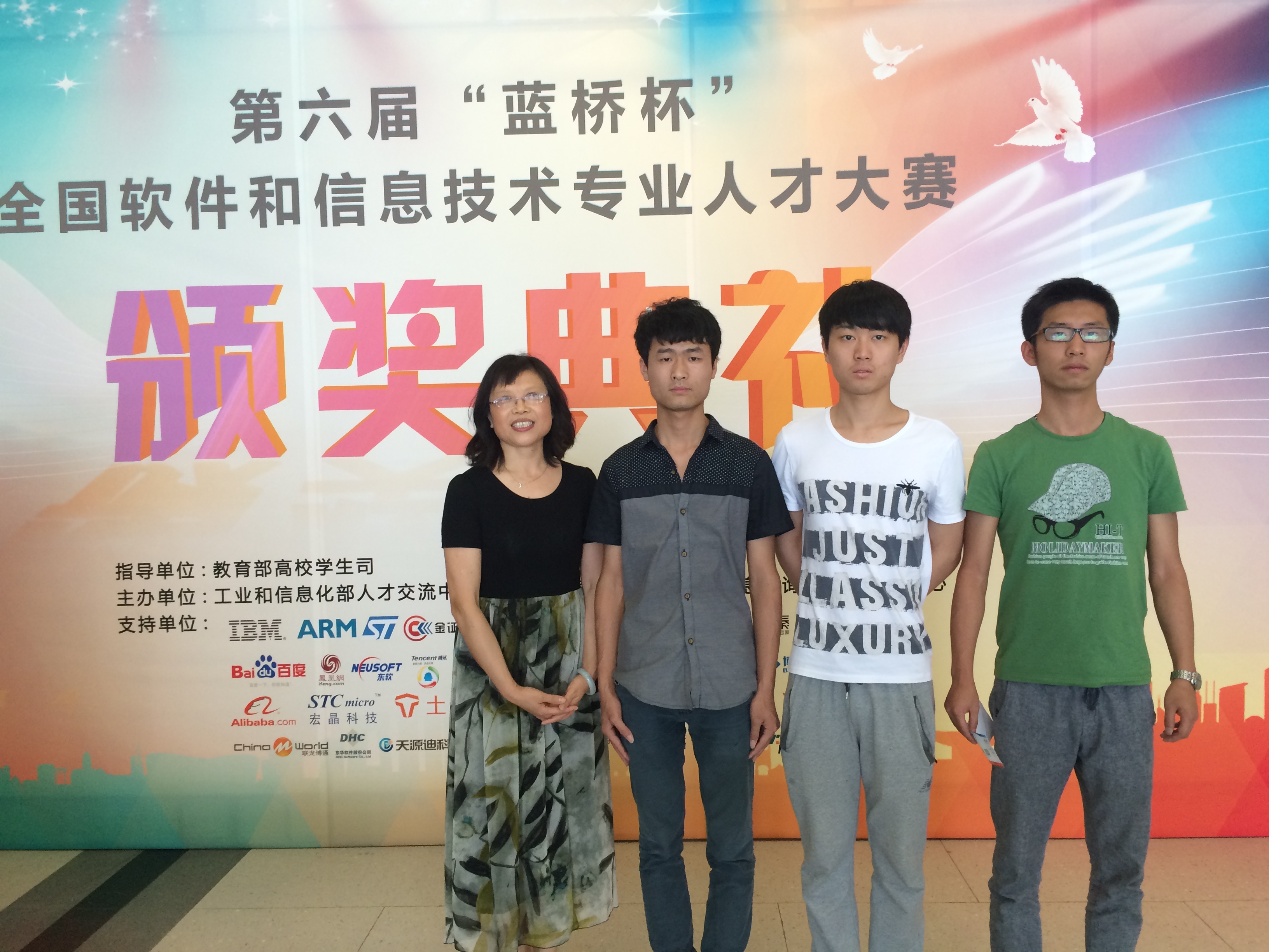 今年4月,beat365信息工程系组织了13软件班6名同学参加了第六届“蓝桥杯”全国软件专业人才设计与创业大赛安徽省初赛,获得了3个一等奖、1个二等奖和2个三等奖的好成绩。其中获得省一等奖的李晨龙、陈志伟、韩航同学在信息系陈久娅、王光亚老师的带领下赴北京科技大学参加了5月30日的全国总决赛。经过与全国各地上百所兄弟院校学生的激烈的比拼,beat365三名同学展现出较好的综合素质,分别荣获全国一、二、三等奖,其中,李晨龙同学获得该项目安徽省参赛院校唯一的一等奖,beat365该项目比赛的总成绩排在安徽省参赛院校第一!(稿件来源:信息工程系)