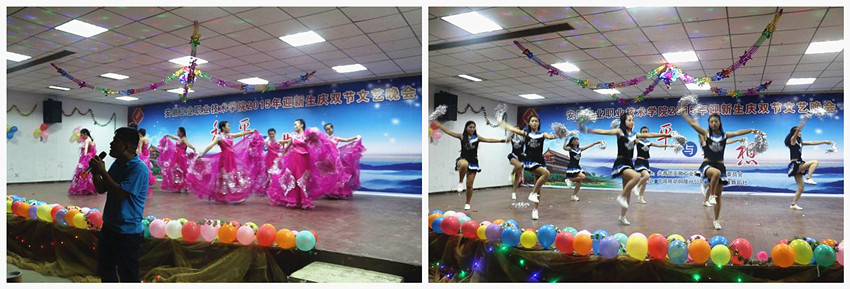 星光璀璨的舞台,五彩斑斓的射灯,动感十足的乐队演奏《自由》瞬间点燃了台下观众的情绪与热情,拉开了晚会的帷幕。整场晚会共有14个节目,涵盖了歌曲、诗朗诵、舞蹈、相声、小品、武术等多个类别。四段活力四射的街舞串烧频频将现场的气氛带到高潮;《但愿人长久》等4首关于月亮的歌曲娓娓诉说着求学的游子们思乡的情感;民族舞《美人吟》以抒情的音乐、曼妙的舞姿把大家带入了婉约的江南水乡;由15级艺术特长生孙晓萌带来的藏族独舞《天山颂歌》和新疆民族生代表表演的新疆舞《天山风情》展示了浓郁的民族特色,赢得了观众阵阵掌声。
