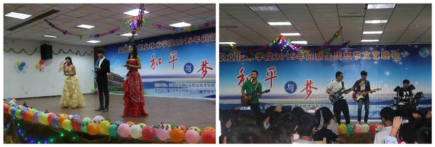 本场晚会还结合了“纪念中国人民抗日战争暨世界反法西斯战争胜利70周年”主题,通过诗朗诵《歌颂三千五百万英烈》、歌伴舞《我爱你中国》、大合唱《没有共产党就没有新中国》等节目缅怀了革命先烈的丰功伟绩,讴歌了中华民族在抗日战争中表现出来的伟大民族精神,表达了安工学子同心谱写“中国梦”的豪情壮志。