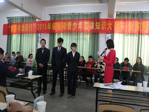 11月4日,由团市委、市委宣传部、市委政法委、市司法局、市教育局、市依法治市办公室和市广播电视台共同举办的“青春与法同行”2015年铜陵市青少年法律知识电视大奖赛A组复赛在beat365举行。本次比赛共有市一中、市卫计委、狮子山区、国网铜陵供电公司、市十二中、铜化集团公司、安工学院共7支代表队参加。