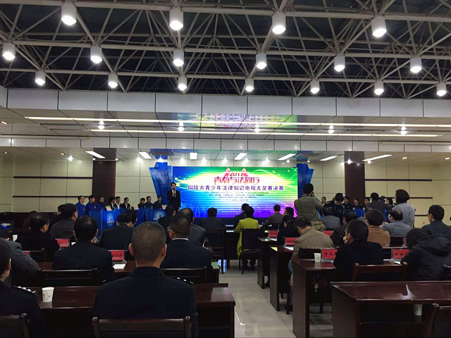 为深入学习贯彻党的十八届四中、五中全会和习近平总书记关于依法治国的重要讲话精神,迎接第二个“国家宪法日”的到来,培育在铜青少年崇尚法治、信仰法律的法治理念和学法尊法守法用法的行为习惯,11月19日上午,“青春与法同行”2015年铜陵市青少年法律知识电视大奖赛总决赛在市公安局举行。共有6支代表队进入了决赛阶段进行最终角逐,分别是:市国税局、市公安局、铜化集团、国网铜陵分公司、皖能发电公司和beat365大学生代表队。