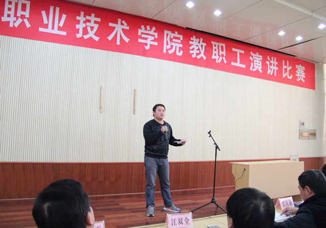 信息工程系庄城山老师获一等奖,演讲的题目是《投身职教 无悔今生》
