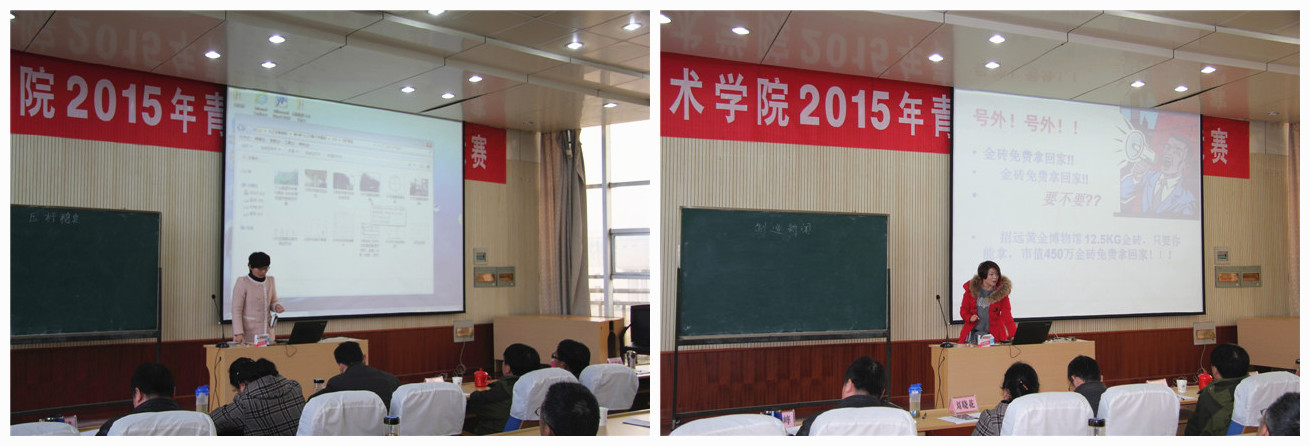 为进一步加强师资队伍建设,提高青年教师教学水平,引导青年教师爱岗敬业、刻苦钻研业务、注重教学基本功训练。学院于1月12日上午,在301学术报告厅隆重举行2015年青年教师教学基本功竞赛。学院党委书记石小河、常务副院长李庆峰、副院长马平以及全体专兼职教师参加了本次活动。