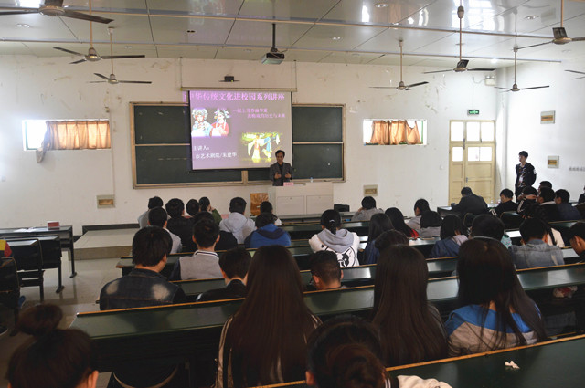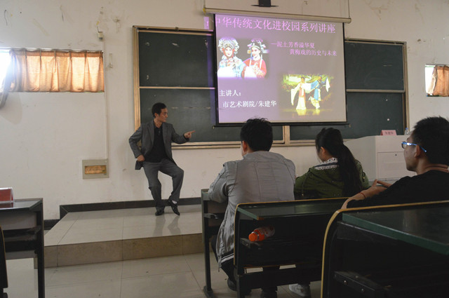 朱建华老师以讲述与现场表演相结合的方式从黄梅戏的起源谈到黄梅戏的萌芽;从黄梅戏的发展谈到黄梅戏的辉煌;从胡普伢谈到严凤英,又从严凤英谈到韩再芬;从草台班子谈到正规剧团;朱老师侃侃而谈,如数家珍;台下,师生们悉心聆听,受益匪浅,感触良深。
