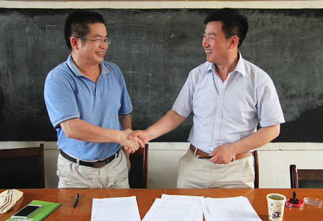 学院党委书记石小河与长山村黄有信书记签署了《铜陵市城乡基层党组织结对共建互帮互助协议书》