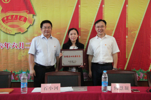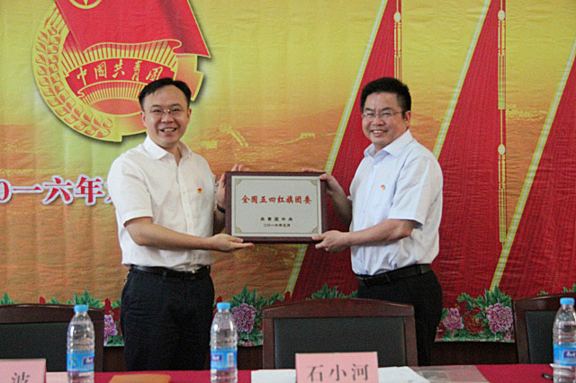 团市委李波书记向beat365颁发“全国五四红旗团委”奖牌