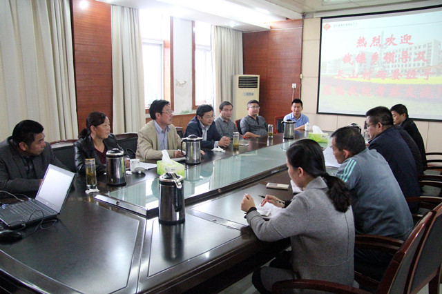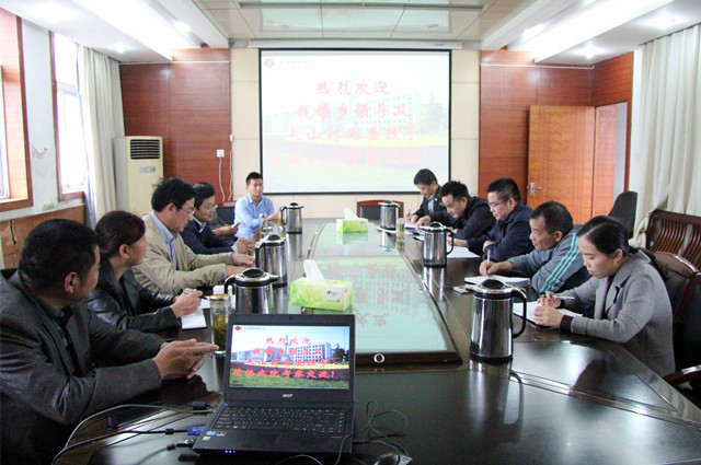10月12日下午,枞阳县钱铺乡纪委书记章胜率长山村两委班子成员来学院参观考察。学院院长陈世虎、党委书记石小河、党委委员院长助理曹芳胜、办公室以及团委负责人在第一行政楼四楼会议室热情接待了来访客人。
