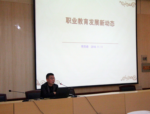 为进一步强化创新创业发展理念,加大创新创业发展行动力度,适应高职教育发展新常态,日前,学院在301阶梯教室举办了职业教育发展新动态专题报告会,报告会由学院常务副院长李庆峰主讲,全体专兼职教师聆听了本次报告。