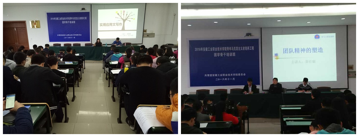 此次培训以专题讲授为主,自学谈论和实践锻炼相结合,共开设了9个专题讲座,分别涉及到“十八届六中全会学习、团队精神培养、学生干部公应用写作、新媒体下的学生工作”等方面内容。(稿件来源:院团委)