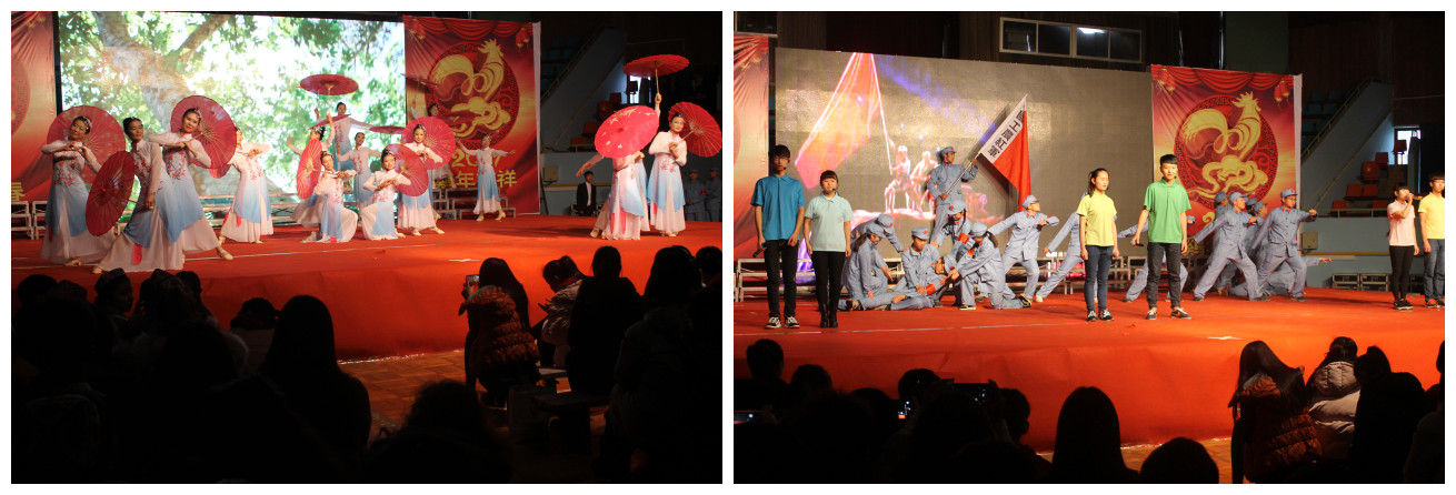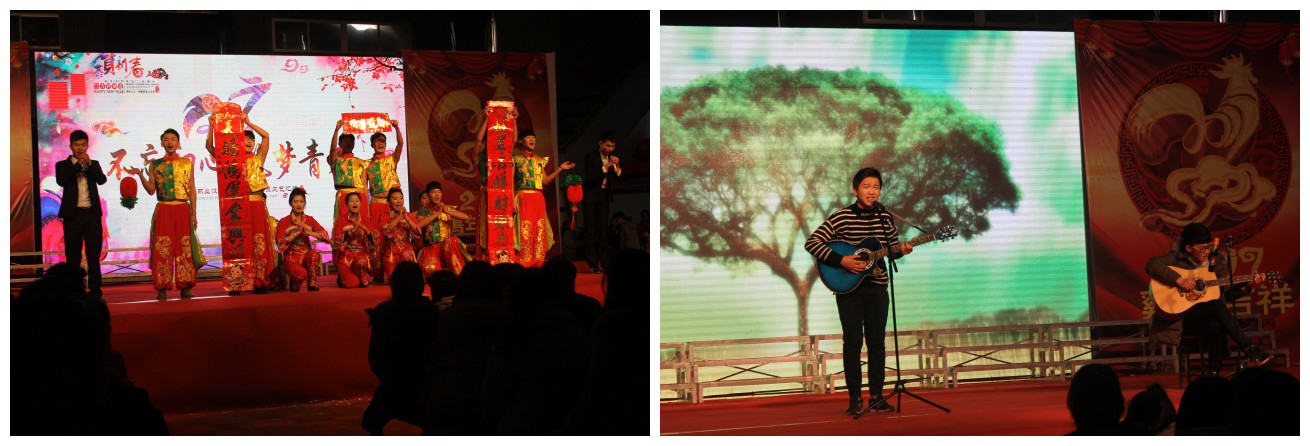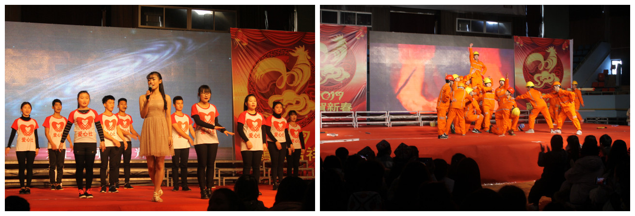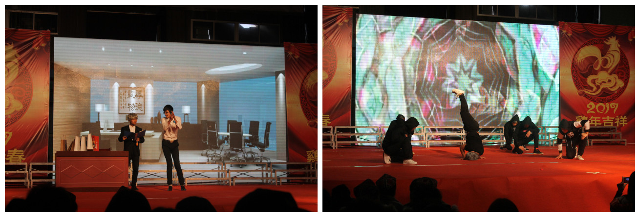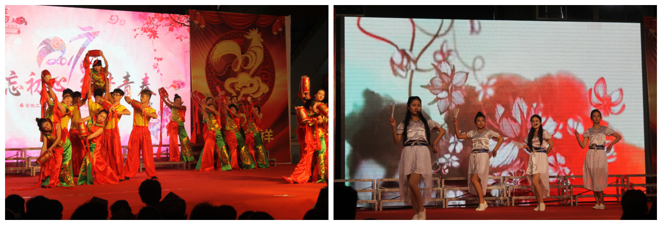 演出在喜庆热闹的开场舞《在欢庆的日子里》拉开序幕。在一片喜庆祥和、笑迎新元的氛围中,学院院长陈世虎发表了热情洋溢的新年致辞,他充分肯定了2016年学院各项工作所取得的重大成就,也展望了2017年学院建设和发展的美好蓝图,并代表学院领导班子向全院师生致以新年的问候与祝福。