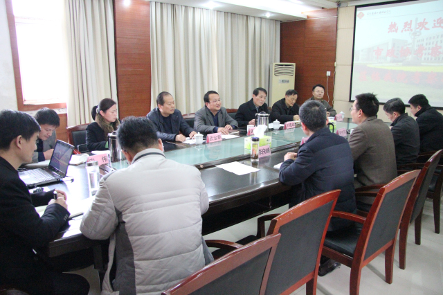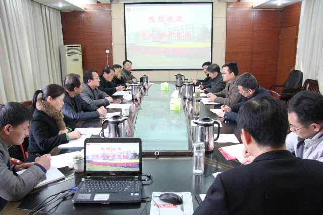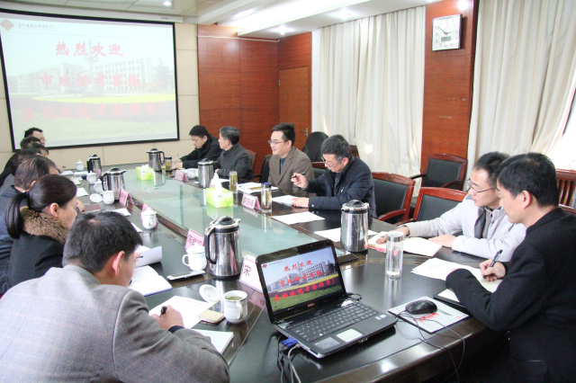 在第一行政楼四楼会议室,陈世虎院长向考察组汇报了学院近年来校企合作开展情况,重点就beat365与铜陵经济开发区开展的“政校企合作”做了详细的汇报。