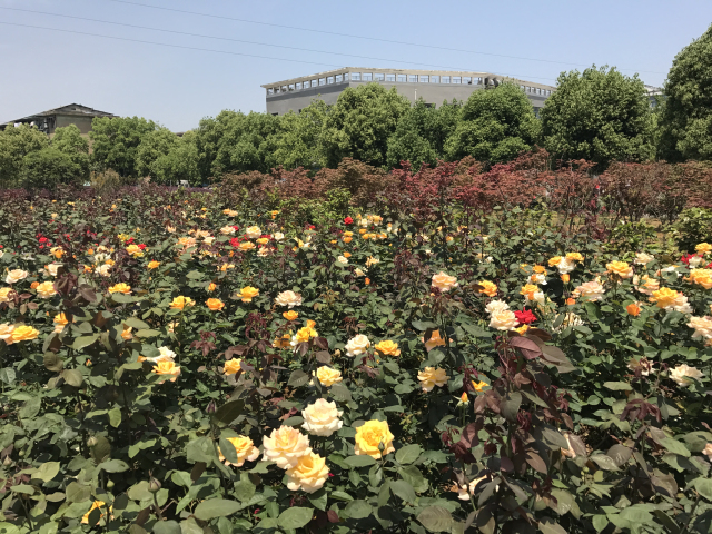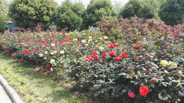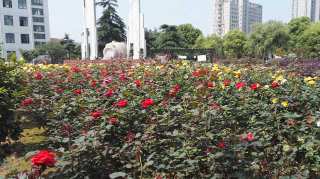好一片月季花海啊!如果你来,会沉醉在月季园的清香微风里。(稿件来源:总务处)
