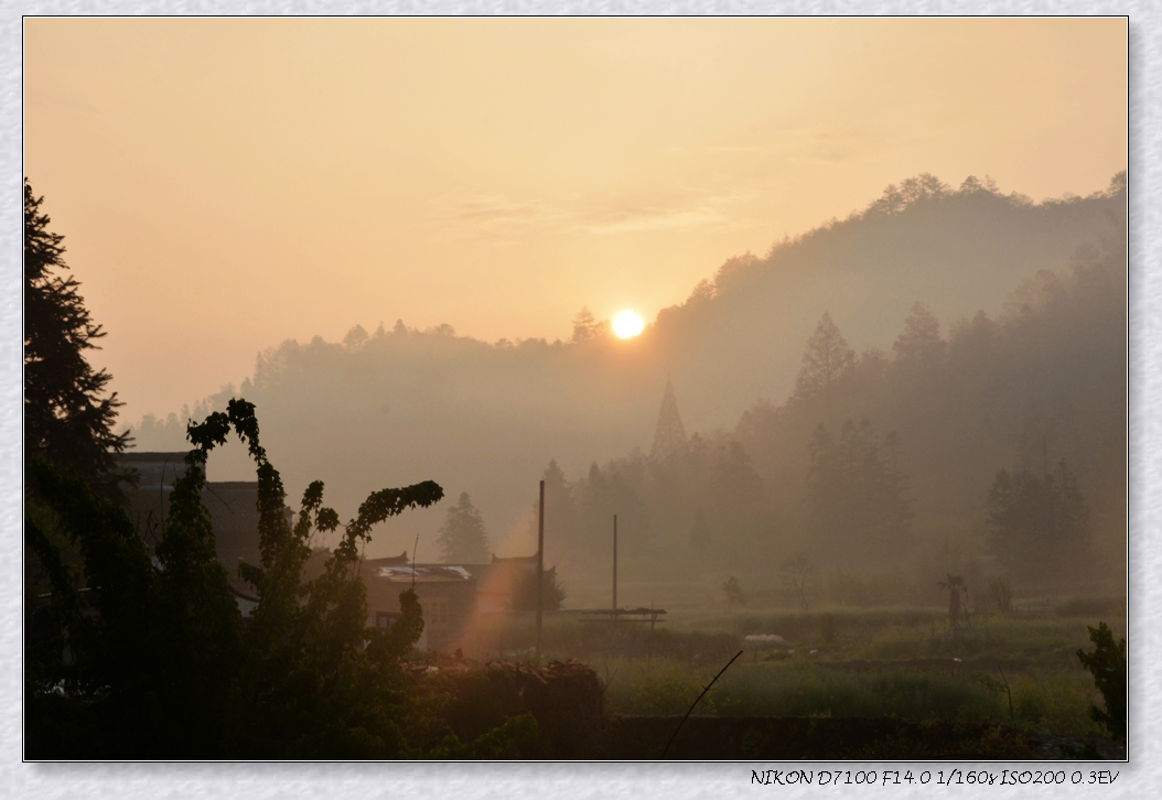 作品简介:当太阳冉冉升起,月亮的光辉在逐渐褪去。雨后的山林,像进化的仙境。