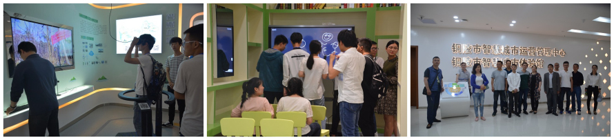云计算中心参观结束后师生们又来到了铜陵智慧城市体验馆。管理员首先给老师和同学们介绍了智慧城市“五个一”的总体架构。然后带老师和同学们在综合管理厅、智慧农业、智能创造、智慧港航、智慧旅游、智慧出行等展区进行了亲身体验。优美的环境、尖端的科技、优良的交互性能迅速点燃了同学们求知的欲望。纷纷亲身体验,感受智慧科技的魅力。