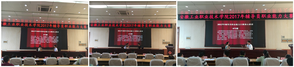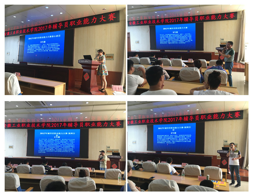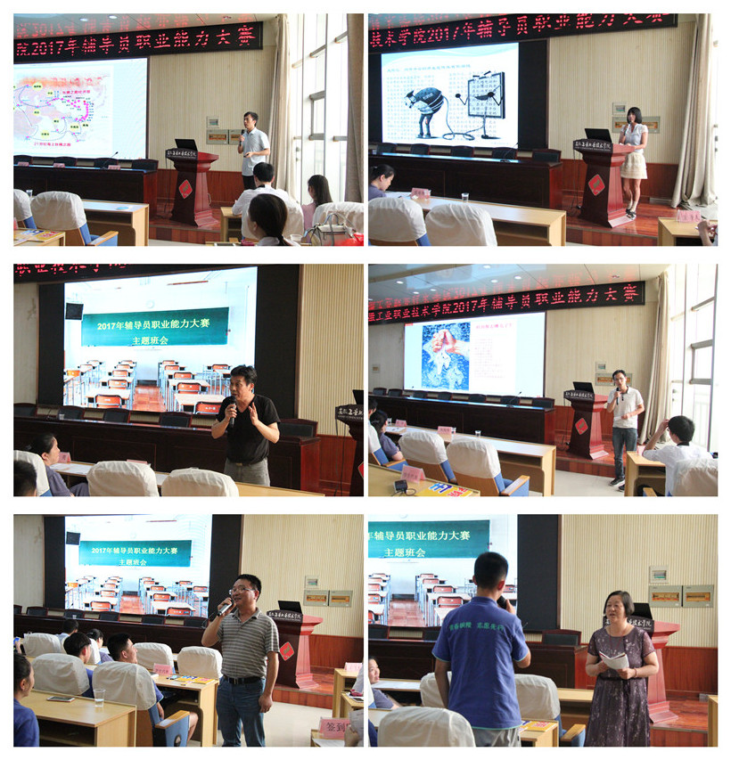 本次大赛共设置了“主题班会、主题演讲、谈心谈话、案例分析”四轮现场赛。“主题班会”限时10分钟,参赛辅导员各展所长,积极与现场组建的临时班集体学生互动,充分展示了通过综合运用思想政治教育、社会学、心理学、管理学、教育学等相关学科知识和方法开展大学生思想政治教育的能力;“主题演讲”限时5分钟,主要考察辅导员语言表达能力和逻辑思维水平,各参赛选手根据指定主题真情讲述了辅导员的工作、生活与梦想;“谈心谈话”情景再现了各辅导员日常工作中与学生的谈话技巧及沟通能力,通过从大学生常见的典型事例,与现场学生助演积极交流,体现以学生为本、关注学生成长的人文情怀;“案例分析”主要选用了贴近学生生活,契合当前热点,涉及学生人际交往、就业创业、党员发展、学风建设等学生工作中紧密相关的实际问题,通过详细地分析和阐释,充分体现了妥善处理学生工作实际问题的技巧与方法。