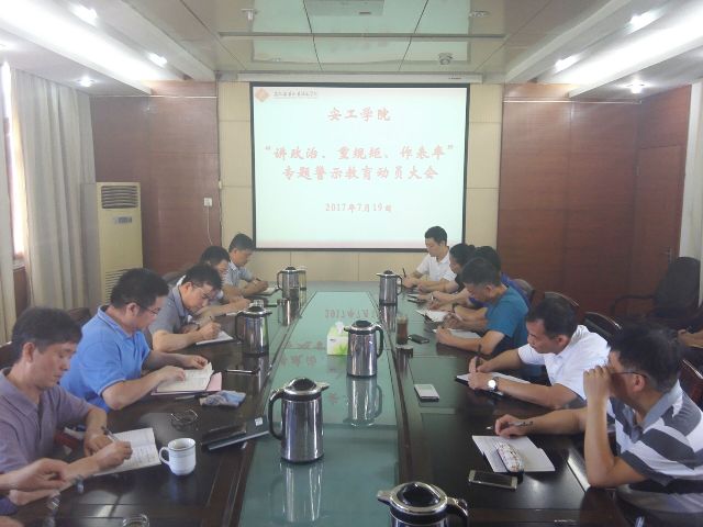 7月19日上午,学院召开“讲政治、重规矩、作表率”专题警示教育动员暨中心组扩大学习会。院领导班子成员、各党支部书记、办公室及政治人事部负责人等参加了会议,会议由院党委书记石小河主持。