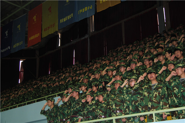 武警支队队长、17级新生代表分别代表军训教官和2017级新生发言。随缘全院新生进行了集体宣誓。