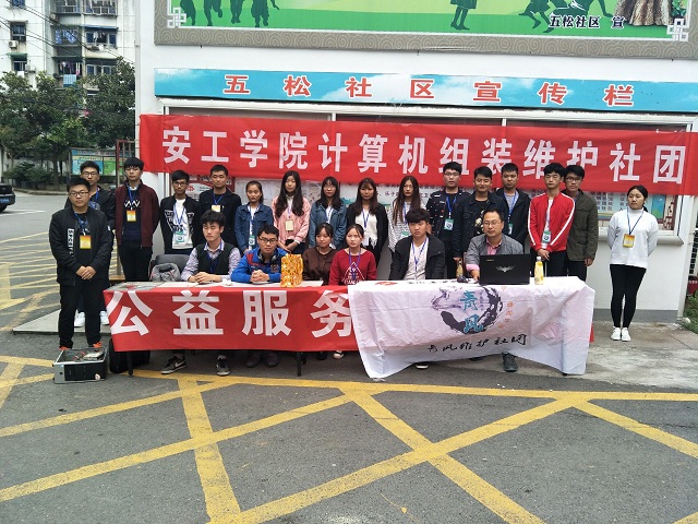 计算机组装维护社团的社员们结合本专业知识对社区居民的计算机进行检测、维修,面对居民们提出的各种问题,社员们都给予了耐心、细致的解答。同学们热情周到的服务受到了小区居民的一致称赞。