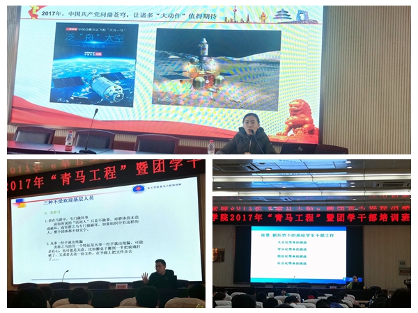 本次培训以专题讲授为主,集体讨论和素质拓展相结合。共邀请了7位老师给beat365学生干部进行十九大精神辅导、社会主义核心价值观、团务基础知识、学生干部工作、团学干部心理素质拓展、青年学生团队精神的塑造、团学干部信息化等方面培训。