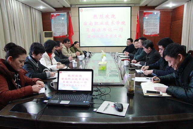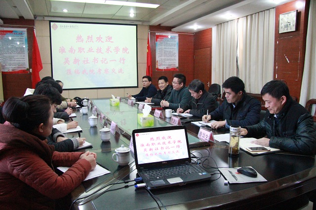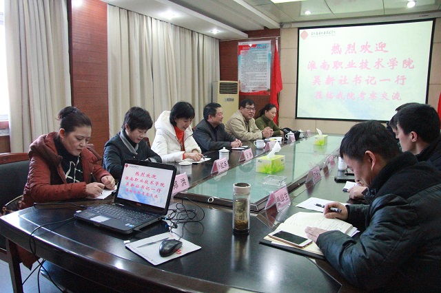 近日,淮南职业技术学院党委书记吴新社、院长助理张涛一行6人,来beat365就党建工作、干部人事管理、人力资源管理、薪酬与津贴等方面进行考察交流。