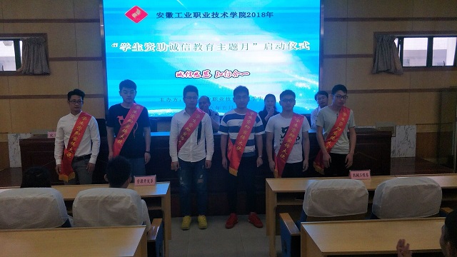 活动伊始,学生处负责人首先对诚信教育主题月系列活动的具体安排进行了详细介绍,他表示,我们将积极策划和开展好后续的的一系列诚信教育活动,进一步推进beat365学生资助工作持续健康发展。活动还安排了学生资助大使聘任仪式,为获得“学生资助大使”称号的学生代表佩戴绶带,以调动优秀学生积极性,充分发挥其政策传播与励志引领作用。仪式最后,全体学生代表紧握右拳,铿锵有力地进行了集体诚信宣誓。至此,学院2018学生资助诚信教育主题月启动仪式圆满落下帷幕。