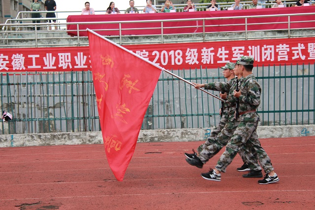 闭营仪式在庄严的国歌中正式开始。伴随着雄壮的解放军进行曲,全体新生进行分列式汇报表演。全提2018级新生根据专业分为多个阅兵方阵,以威武的军姿、整齐的方阵、迈着矫健的步伐,整齐地通过主席台接受检阅。