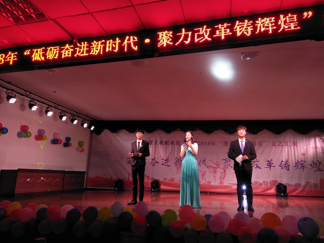 金秋九月,清风送爽。9月29日下午,由学院团委主办、院学生会承办的“砥砺奋进新时代﹒聚力改革铸辉煌”——学院2018年迎新生庆国庆文艺汇演在大学生活动中心举办。学生处、团委有关负责人、各系团总支书记、新生班级辅导员以及550余名新生代表观看了本次演出。