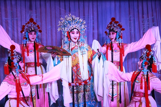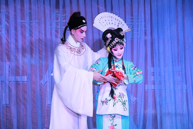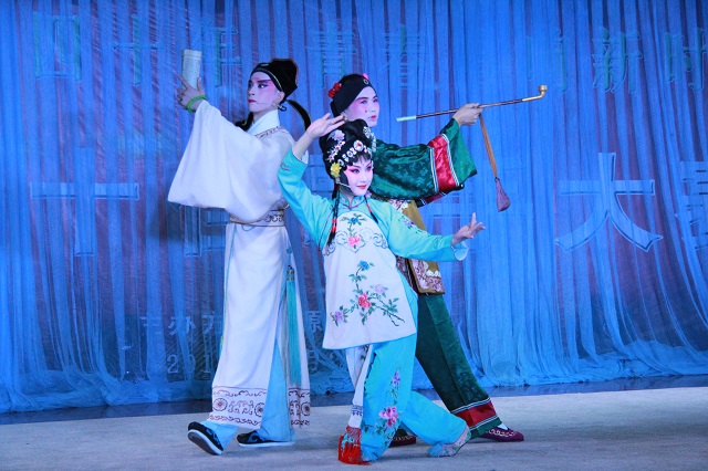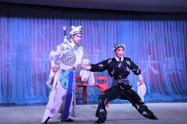 整场演出穿插各种形式的艺术表演,荟萃了中国徽剧的经典曲目,将徽风古韵演绎得淋漓尽致,充分展现了徽剧作为民族艺术瑰宝的独特魅力。演出在传统徽剧《拾玉镯》中拉开帷幕,字正腔圆的精湛唱腔和优美的身段赢得阵阵喝彩;徽剧《断桥》中,将戏剧情节与人物性格紧密结合在一起,同学们为白素贞和许仙的情深意重深深动容;传统短打武生剧目《三岔口》,唱、念、做、打无不生动美妙,演员们挥舞大刀时的神采、娴熟的武打动作赢得了观众热烈掌声。最后,国家非物质遗产传承人王丹红等青年演员表演了经典剧目《新贵妃醉酒》,演员们扎实的功底与细腻的表演,再现了这一经典京剧唱段。