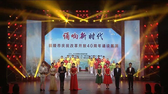 12月20日下午, “诵响新时代”铜陵市庆祝改革开放40周年诵读展演在五松山剧院举行,受活动方邀请,beat365派出海子经典诗文诵读社团学生集体朗诵《再出发,我们第一棒》参加了本次演出,获得在场观众的热烈掌声。
