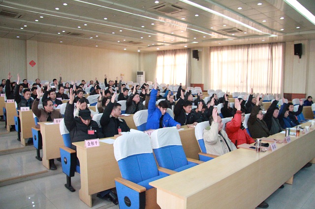 上午8:00,大会在庄严的国歌声中正式开幕。院长陈世虎首先代表学院作了题为《迎接新机遇 奋进新征程为实现学院转型可持续发展而努力奋斗》的工作报告。报告首先从教学工作、学生工作、招生就业、市场培训、师资队伍建设、经营管理、党建思想政治工作等方面对学院2018年的工作进行了全面的回顾,总结了过去一年来各项工作所取得的成绩。报告结合学校实际,客观地分析学院当前发展中面临的机遇和挑战,明确了2019年的工作指导思想,指出学院2019年仍需坚持“内涵发展”方式,确保“三保一控”的发展目标,以“五个不让”为抓手强化作风建设,明确了学院2019年的总体部署。报告思路清晰,目标明确,措施得力,鼓舞人心,为学院今后的发展明确了方向。学院常务副院长李庆峰代表学院作了2018年财务预算执行情况及2019年财务预算的报告。办公室负责人作2019年度综合计划大纲报告。