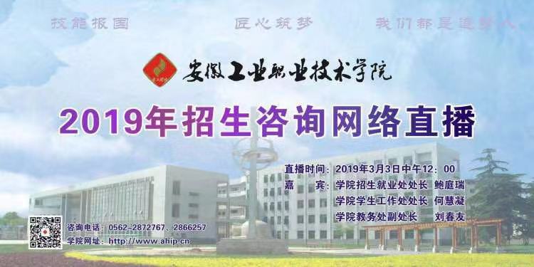 为使安徽广大考生与家长能够全面、直接地了解beat365官方网站招生政策、专业优势、办学特色和录取条件要求等信息,学院招生就业处、学生工作处和教务处负责人将在3月3日中午12点走进直播间,与广大考生和家长进行互动咨询、交流信息,帮助考生优化高考志愿填报方案,提高报考成功率。欢迎全省广大考生和家长来到直播间聆听精彩推介。大家也可以通过现场网络提问、电话咨询等方式咨询你所关心的高招问题。