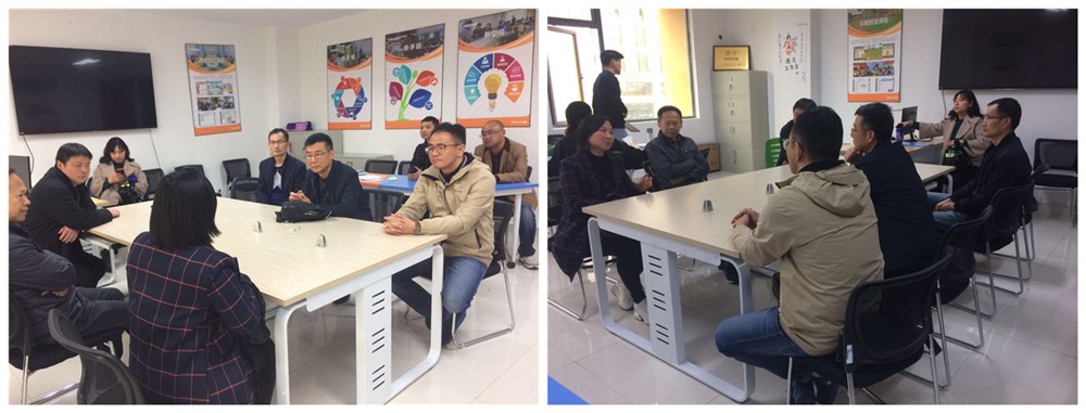 铜陵学院创新创业学院王丽萍院长和相关老师详细介绍了铜陵学院创新创业学院的发展历程、运行机制、人才培养及教育模式等,双方还就如何孵化学生创新创业团队、打造优秀创客工作室、学生服务团队进行深入交流。随后一行人参观了铜陵学院大学生创新创业孵化基地和创客空间,工作室内充满了浓郁的科技创新文化及创业氛围。