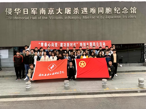 为纪念五四运动100周年,强化团员身份意识教育,突出仪式教育感召作用,引导广大团员青年重温革命历史、传承红色基因,增强听党话、跟党走的思想和行动自觉,3月29日,学院团委在侵华日军南京大屠杀遇难同胞纪念馆开展“青春心向党·建功新时代”特别主题团日活动。学院团委负责人、团委老师和团员学生代表共计47人参加了活动。