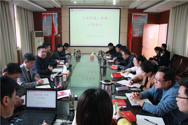 为安排布置2019年度党建纪检工作,扎实推进学院党建纪检工作上台阶、有举措、见成效,学院于4月3日上午在第一行政楼四楼会议室召开党建纪检工作会议。学院党委书记石小河,纪委书记、工会主席周理瑞,党委委员、政治人事部主任范清义出席会议,学院办公室、政治人事部、文明办、学工部、团委、武保部、各支部负责人参加会议。会议由学院党委书记石小河主持。