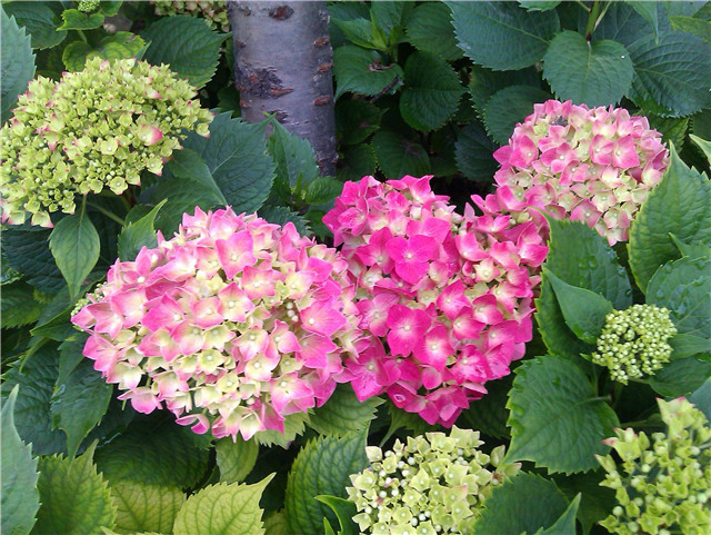 生活区中间绿化带的边缘,镶嵌着八仙花(绣球花)。